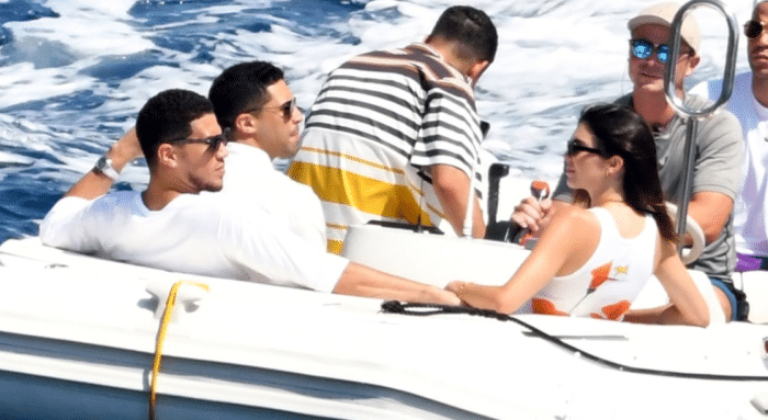 布克詹娜接吻曝光!太阳球星露幸福笑容,扶女友上船后斜躺她怀里