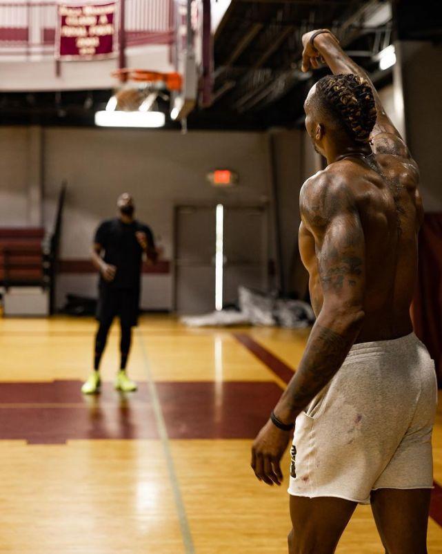 大汗淋漓的霍华德赤膊上阵,一身肌肉相当抢眼。已经快要36岁的霍师傅,依然保持很好的身材,这也是他新赛季能够继续做出贡献的基础。上赛季,他未能成功续约湖人,前往76人打了一个赛季,担任恩比德的替补,场均7分8.4篮板。重回湖人的霍华德表示,洛杉矶就像是自己的家,他仿佛只是出去旅行了一个赛季,现在又回来了。