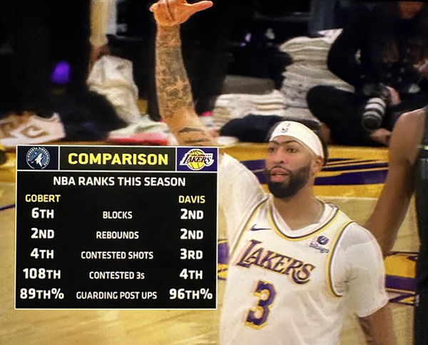 按照常规轮换,浓眉本该在第二节6分54秒上场,可他一直在更衣室中接受治疗,次节没有上场;浓眉无法上场,湖人小个阵容被森林狼打爆,第二节27-46狂输19分,半场打完湖人落后15分。