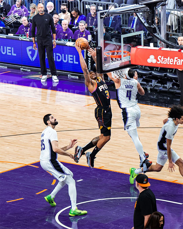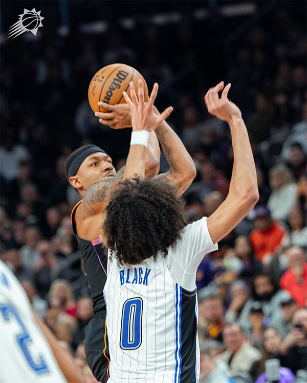 下半场,比尔反击完成霸气隔扣,杜兰特输送三分,布克里突外投连得5分,太阳领先15分后防守松懈,被魔术一波流打回悬念,杜兰特中投回应,两队僵持不下,比尔压哨中投助太阳领先2分进入末节。