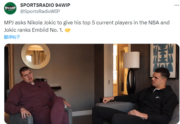 另外掘金球星约基奇评选心目中现役前五球星,约基奇表示:这个联盟里的天赋实在太多了。我选的话,会选恩比德、东契奇,然后是杜兰特和詹姆斯,你肯定不会把他们俩排除在外,即便他们现在有点上年纪了,但依旧可以打出很好的表现,然后还有库里。
