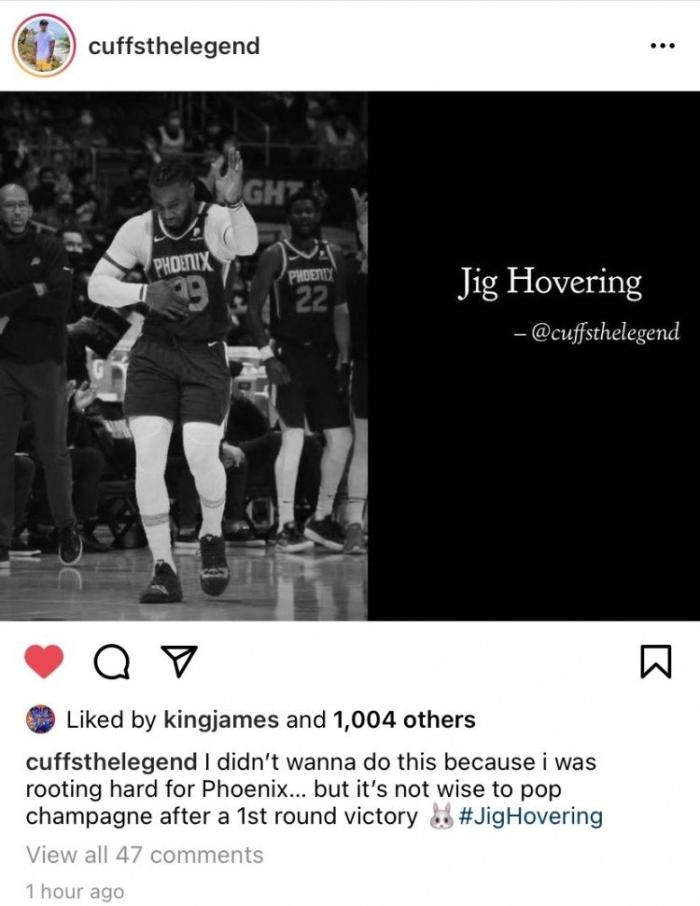 可是如今,太阳队也丢掉了冠军,詹姆斯的一个朋友喊话克劳德,表示:我支持太阳,可是赢了首轮就开香槟,真的很不明智。随后,湖人队助教菲尔汉迪在动态下留言:当兔子拿到枪的时候可就不好玩,我们会记得这件事情的。
