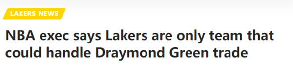 目前勇士球星追梦格林正处于禁赛期,据美记Sean Deveney报道,一位NBA高管认为,湖人是唯一一支可以交易引援追梦的球队。