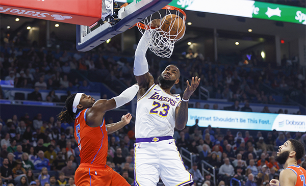 来源:24直播网12-24 19:1324直播网12月24日讯 ,NBA常规赛结束一场焦点战,湖人客场击败雷霆,结束近期的4连败,同时终结雷霆3连胜。这场比赛詹姆斯复出,砍下40分7篮板7助攻2抢断2盖帽,浓眉哥也有不俗发挥,得到26分11篮板7助攻2盖帽,湖人的双核詹眉组合联手拿下56分。