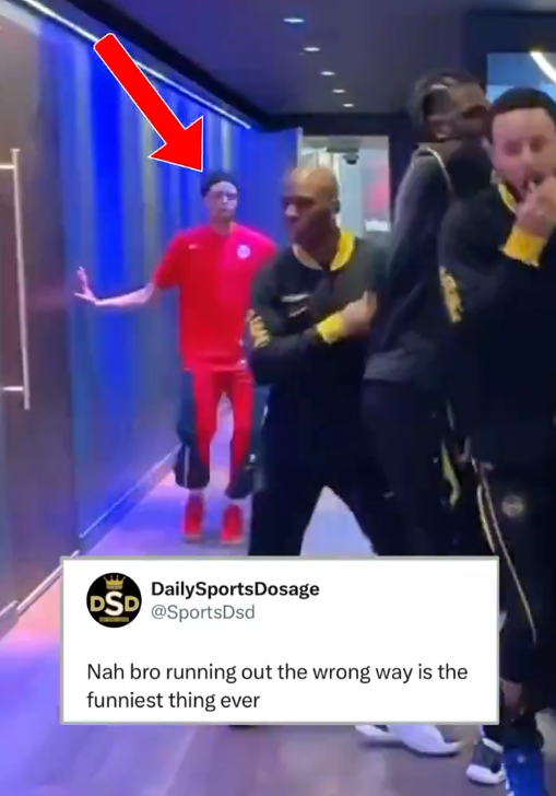 赛前还发生罕见一幕,勇士众将在更衣室通道中加油打气,结果勇士旧将罗林斯跑错了更衣室,看到前队友们,罗林斯十分困惑,然后扭头离开。