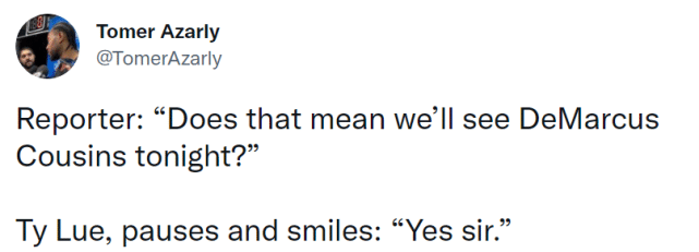 对于艾顿来说,他可能会获得更大的发挥空间。有记者问卢指导:“祖巴茨不打,是否意味着我们会看到考辛斯?”卢指导停顿了一下,笑着说:“是的。”