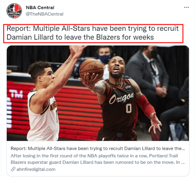 当然,也有人认为这是利拉德的策略。他本人并不想离开效力多年的开拓者,但通过外界的压力,他或许能够逼迫管理层大力补强,来提升球队实力,从而增加开拓者冲击总冠军的机会。毕竟,利拉德就快31岁了,他没有太多时间去耐心等待了。