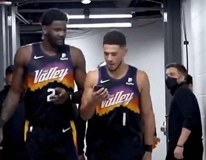 系列赛的前两场,当保罗缺阵的时候,布克在比赛胜利后总是会第一时间拨通保罗的视频,向老大哥汇报结果,那个样子像极了学生向老师汇报工作。而保罗也是如此,在布克吃亏的时候,他也是第一时间挺身而出,如此好的球队氛围,也难怪很多球迷表示,太阳队的氛围值得一个总冠军。
