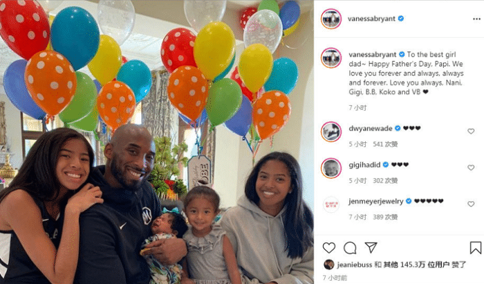 泪目!瓦妮莎祝科比父亲节快乐,晒全家合影:我们会永远爱你