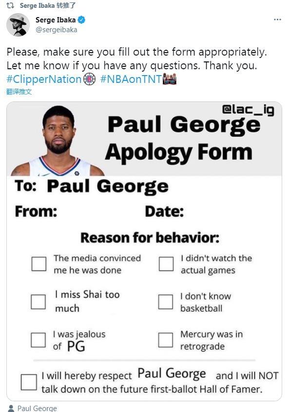 伊巴卡赛后再次转发了“大家排队填表向乔治道歉”推文,为队友鸣不平。接下来他们将面对的是太阳队,他们绝对不希望征程就此止步,他们创造了快船队史纪录,但走到这一步谁不想夺冠?况且常规赛战绩快船2:1是稍稍占优的,考虑到保罗可能连续缺阵,快船的赢面不小!