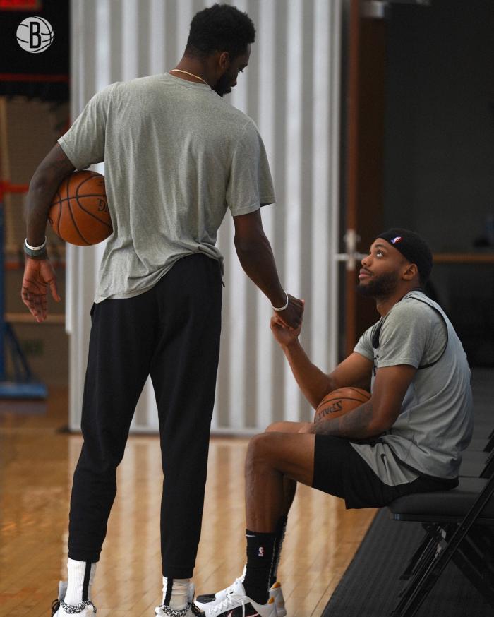 篮网还晒出杰夫-格林和小布朗击拳以及小乔丹开心投篮的画面。