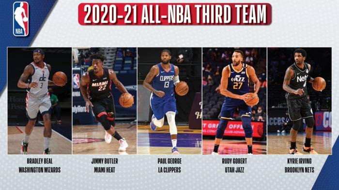 最佳三阵:戈贝尔、巴特勒、乔治、比尔和欧文