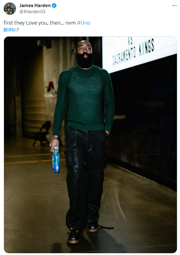 赛后哈登还晒帅照庆祝胜利:首先,他们很爱你.....
