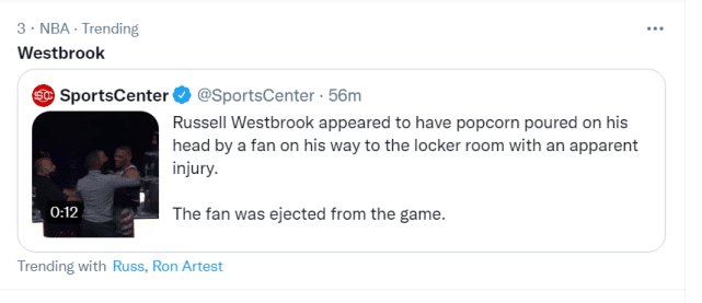 冲上热搜+詹皇力挺!威少回应被扔爆米花:没人敢在街上这样对我