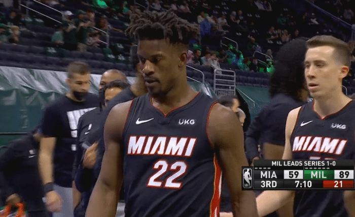下半场的比赛开始后,字母哥突破上篮打中的同时, 阿里扎凶狠犯规,字母倒地,在起身的时候,阿里扎摁着字母哥的身体起来,这是一个很明显的挑衅动作,裁判来到技术台观看录像回放,在经过长时间的商量后,阿里扎一级恶意犯规,2+1,雄鹿并且有球权,随后纳恩在防守米德尔顿的时候再犯规,裁判经过录像回放后吹罚了,纳恩一级恶意犯规,三罚一掷,热火队的心态出现了崩盘,两队分差来到了32分,比赛基本已经失去了悬念。本场比赛的评论员巴克利在直播间谈到了两队,他表示雄鹿会以4:0横扫热火,热火无法击败雄鹿。