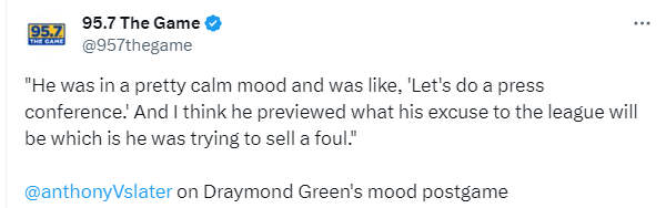 赛后追梦公开道歉,还表示他不是故意打努尔基奇的,勇士随队记者Anthony Slater透露:他赛后心情很平静,就像在说'我们开个新闻发布会吧'。我认为他向联盟预告了他的借口,那就是他只是想犯规。