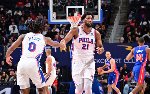 恩比德41+11狂刷纪录!连续8场30+10太狠 送活塞耻辱21连败