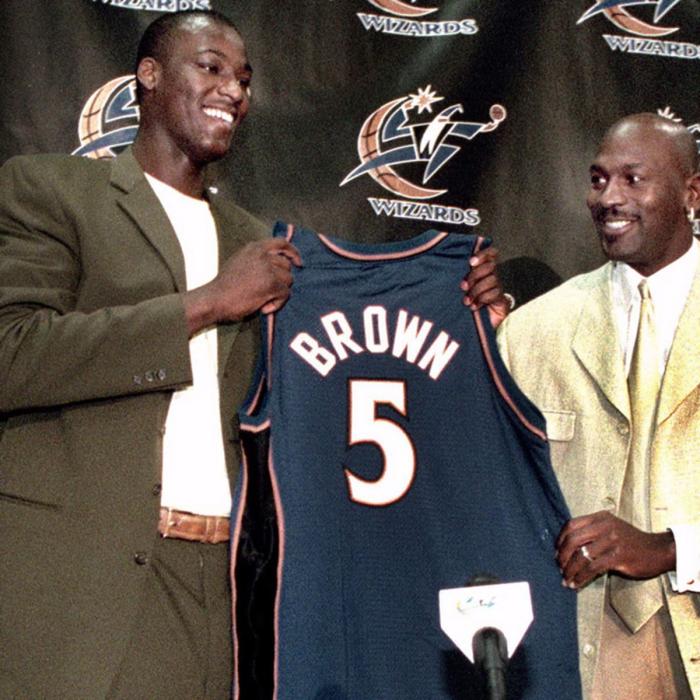 言辞中透漏着各种不满,2001年年仅19岁的他作为天才高中生被选中,当时的奇才百废待兴,考虑到乔丹的号召力和尚有一战的实力,球队本想有一番作为,当时乔丹既是小股东也是球员,所以有参与决策的权利,夸梅布朗谈到的管理层试图交易他换布兰德的信息是有可信度的!