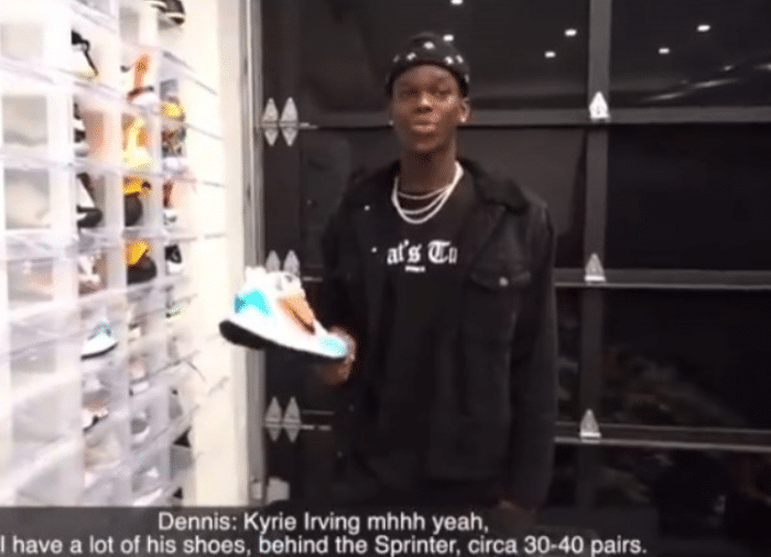 在直播节目中,施罗德表示,“我不会再穿欧文的球鞋了,我大概有他三十或者四十双他的球鞋,我不会再穿了,在那场比赛发生一些事情后,这就不可能再发生了(穿欧文球鞋打球)”。可以看出,施罗德戴着帽子,在直播中向球迷们展示球鞋,希望能送出去。