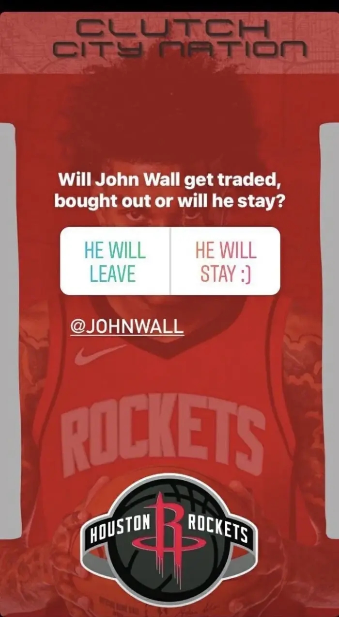 除此之外,因二级跟筋拉伤而早早就在家里躺的沃尔,闲来无事只能在网上冲浪,刷到火箭媒体Clutch City Nation发起的一项投票,内容是: