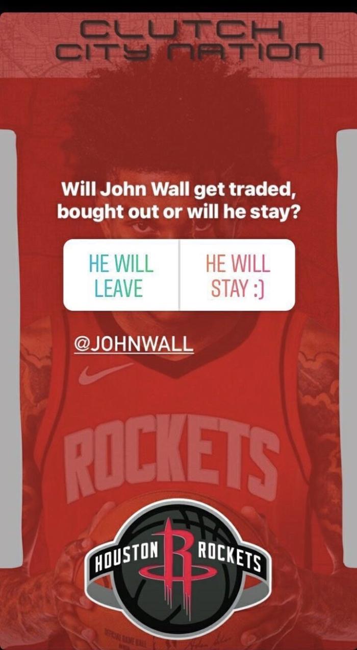 来源:24直播网05-16 15:0124直播网讯 北京时间5月16日,为Clutch City Nation的火箭媒体发起了一项投票,投票内容是:约翰-沃尔会被交易,买断还是会留下?