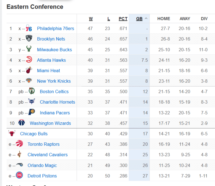 第4到第6的争夺依然积累,老鹰116比93击败魔术,全队6人得分上双,他们还是排名第4位,他们还有一场比赛是打火箭。热火击败费城,他们排名第5位,未来两场比赛的对手是雄鹿和活塞,排名依然还有变数。尼克斯102比98险胜马刺,他们排名第6,未来两场打黄蜂和凯尔特人,他们依然有机会提升自己的排名。整体看,第1到第3,第4到第6,东部的排名卡位战依然激烈。