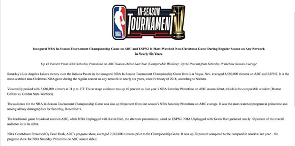 金字招牌!湖人季中赛收视率出炉,连创纪录,詹姆斯门面担当