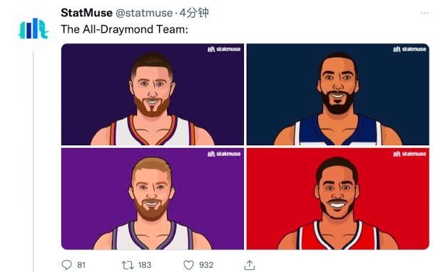 格林恶犯被驱逐引热议,名嘴比尔-西蒙斯发推写道:追梦是本赛季目前为止的恶意犯规MVP(LVP);美媒晒追梦“受害者”阵容:努尔基奇、戈贝尔、小萨博尼斯和普尔。
