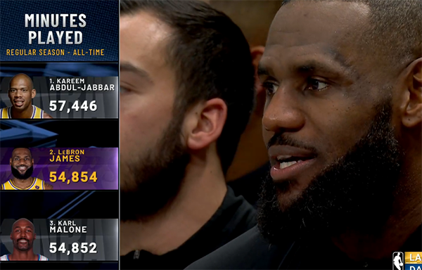 下半场,詹姆斯第三节再次发力,连续在禁区得分后外线连中两记三分,短短2分多钟,詹姆斯独砍10分再次吹响反扑号角,3分41秒詹姆斯补篮得分后湖人追到3分,之后老詹下场休息,浓眉连续得分带队扭转局面,更是轰进压哨三分,三节打完湖人反超2分,詹姆斯和浓眉都是单节拿到12分。