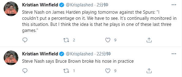 篮网悍将鼻子骨折仍出战!纳什确定哈登常规赛复出:最后三场至少打一场