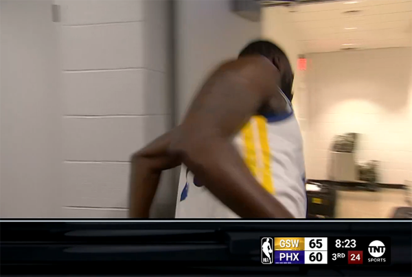 勇士和太阳第三节8分23秒,追梦格林在拉拽中转身抡拳直接打倒努尔基奇,后者痛苦倒地不起,之后裁判多次回放这一幕,最终追梦格林吃到二级恶意犯规,直接被驱逐离场,太阳主场球迷狂嘘格林,追梦直接跑回更衣室。