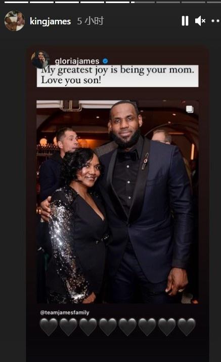 老詹也进行社媒回应“#爱心#爱心#爱心#爱心#爱心#爱心#爱心#爱心,我的荣幸!妈妈,我爱你!”可以说老詹真的是人生赢家!在篮球场上他取得了无数荣誉,是历史最佳球员之一,全球范围内拥有无数的粉丝。场外他有自己的公司,是利物浦小老板,有自己的基金会。家庭和谐,孝顺妈妈,忠诚于爱情,有儿子女儿!
