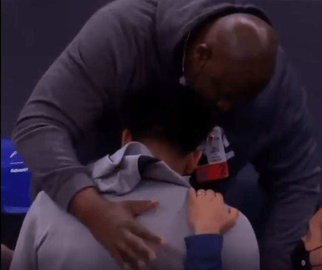 另外母亲节也有人痛哭,今日森林狼与魔术赛前,唐斯痛哭流涕,看台上的父亲抱着自己的孩子不断抚摸他的头和背部安慰他!这个画面让人泪目,唐斯的母亲因为得了新冠而离世,除此之外他还有多位亲人离世,这让唐斯非常难受,多次在接受采访中痛哭!