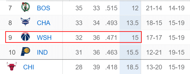 过去19场比赛,奇才赢下其中15场,胜率高达78.9%,是全联盟同期战绩最好的球队。