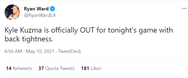 你的位置: 24直播网 篮球直播 NBA 官宣!库兹马因腰部肌肉紧张缺战太阳,他不能打湖人12胜18负