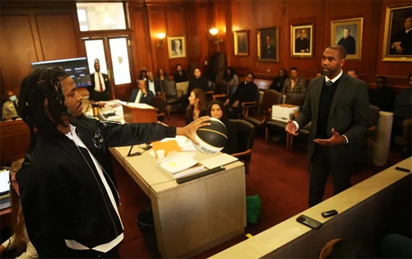 莫兰特出庭自己拳击17岁少年案 并现场用篮球演示传球砸球