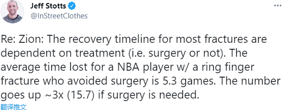 锡安遭遇左手手指骨折的伤病,在常规赛还剩下6场的情况下,这意味着锡安很可能提前赛季报销,无限期休战,没有复出时间表,据运动教练分析,手指骨折不接受手术,一般伤停5.7场比赛,若是手术的话,伤停场次翻三倍;对于锡安的伤病,鹈鹕总裁大卫-格里芬回应。