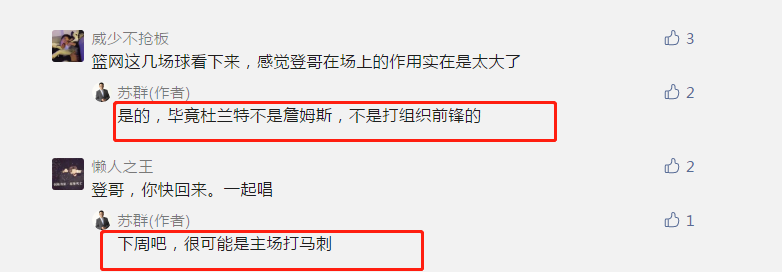 而篮球名嘴苏群感慨,KD终究不是詹姆斯,他不是组织性的前锋。有球迷表示,“看篮网最近几场球,感觉登哥在场上的作用实在太大了”。而苏群老师回应,“是的,毕竟杜兰特不是詹姆斯,不是打组织前锋的”。