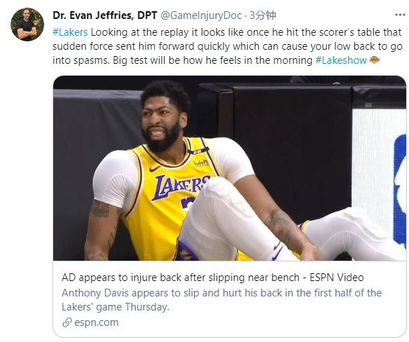 来源:24直播网05-07 15:0824直播网讯 北京时间5月7日,湖人24分惨败快船,赛季三战全败遭快船横扫,浓眉仅仅只打9分钟9投2中拿到4分,因背部痉挛而提前退出比赛;赛后浓眉透露自己的脚踝感觉很好,背部伤势也没有那么痛了,计划出战下一场与开拓者的比赛。
