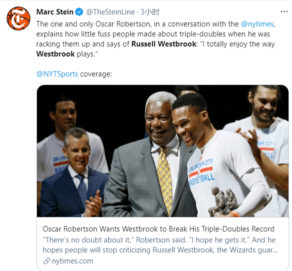 此前大O罗伯特森表示希望韦少能打破自己的纪录,更是替韦少抱不平,直言:光凭总冠军来评价韦少是很荒谬的,任何球员都无法靠自己夺冠。
