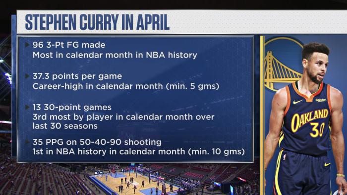 勇士媒体Warriors Nation发推写道:毫无疑问,2021年的4月份归库里所有。