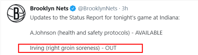 欧文腹股沟酸痛休战!8项奖金才激活2项?篮网媒体:我们还有KD詹姆斯