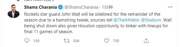 跟哈登同步!沃尔遭遇重伤赛季报销,塞拉斯:努力让火箭避免垫底!