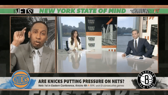 来源:24直播网04-27 15:3424直播网讯 北京时间4月27日,美国名嘴斯蒂芬·A·史密斯,今日在节目中谈到篮网的情况,他表示如果今年尼克斯进了季后赛,而篮网没有夺冠,那杜兰特和欧文会对他们没有加入尼克斯而感到后悔。