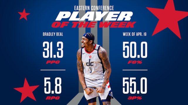 过去一周,比尔率领奇才打出4胜0负的佳绩,场均贡献31.3分5.8篮板3助攻,投篮命中率50%,三分命中率55%。这是比尔生涯第4次当选周最佳球员,而上一次已经要追溯到2019年3月。