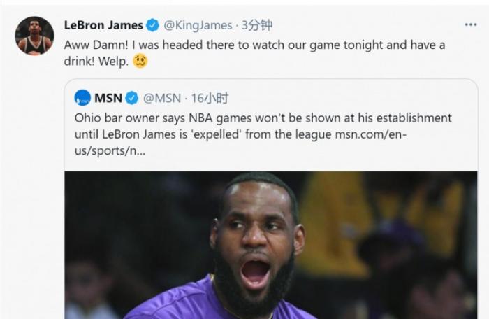 老詹惹事了!酒吧老板扬言他打球就禁播NBA,詹姆斯:本想去喝一杯!