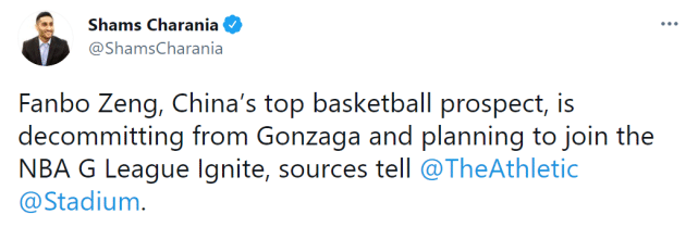 曾凡博去年秋天曾经承诺加盟冈萨加,但负责招募他的助理教练汤米-劳埃德的离队,是曾凡博决定加盟G联赛的原因。他将加入G联赛的“点燃计划”。该计划在2020-21赛季首次出现在G联赛,去年点燃队签下了多位很有天赋的年轻人,其中,杰伦-格林和库明加很有可能成为今年顺位前五的新秀。