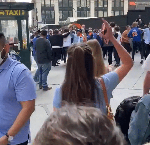 尼克斯豪取九连胜!球迷们上街欢庆,篮网粉丝误入后瞬间被包围