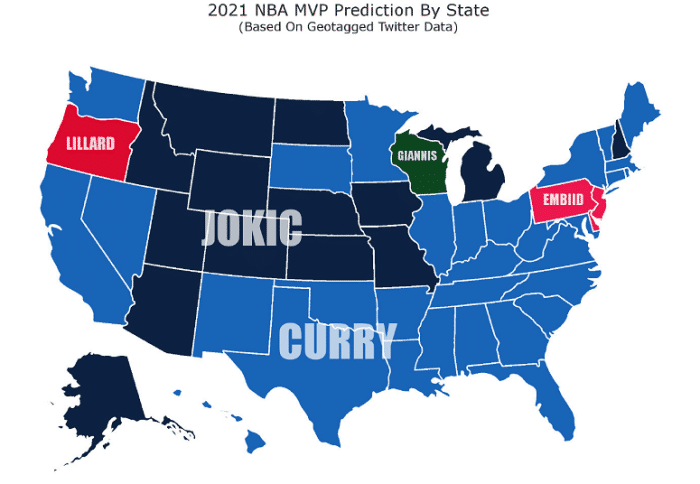 美媒统计各州预测MVP!库里压倒性优势,约基奇第二,利拉德尴尬