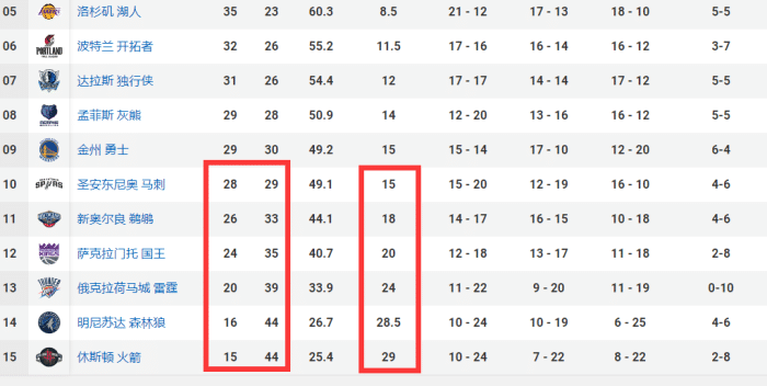 可以看到,在这场比赛之前,排名西部第10的马刺战绩是28胜29负,森林狼和火箭都是44负。也就是说,如果马刺今天击败活塞拿到第29胜,那么即便森林狼和火箭剩余常规赛全部取胜,他们最多也只能拿到28胜44负,仍然无法拿到一个参加附加赛的名额。